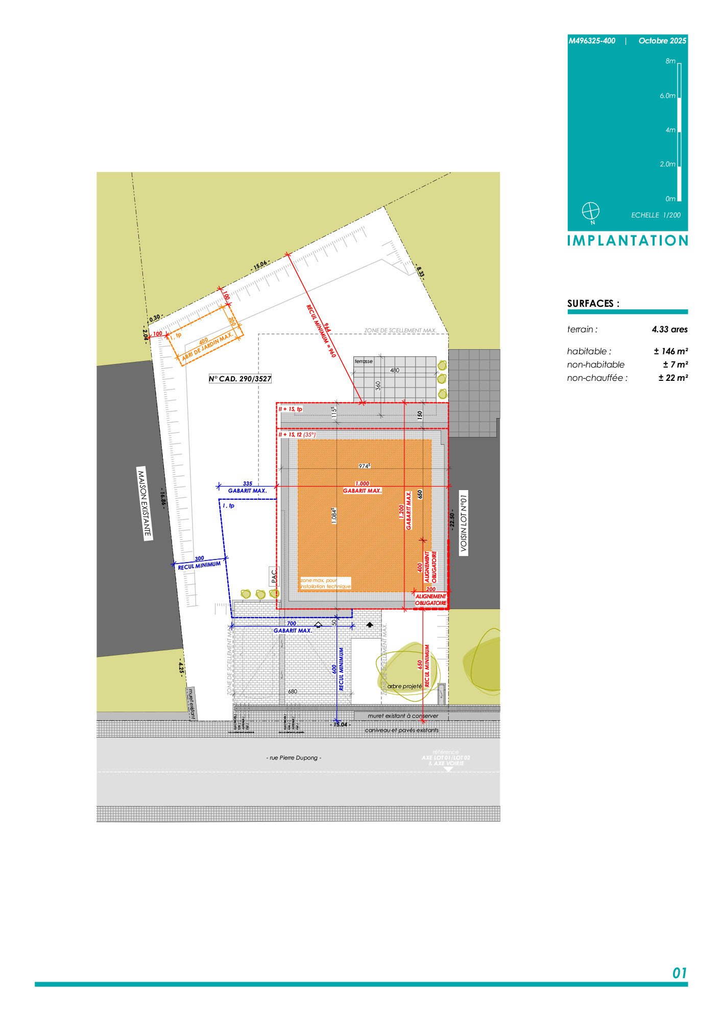 ± 22 m2 surface non habitable (hors de l’enveloppe énergétique)