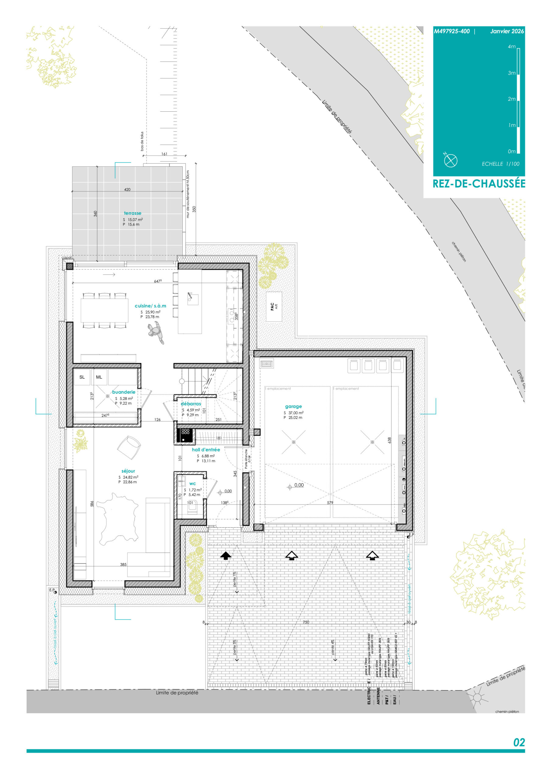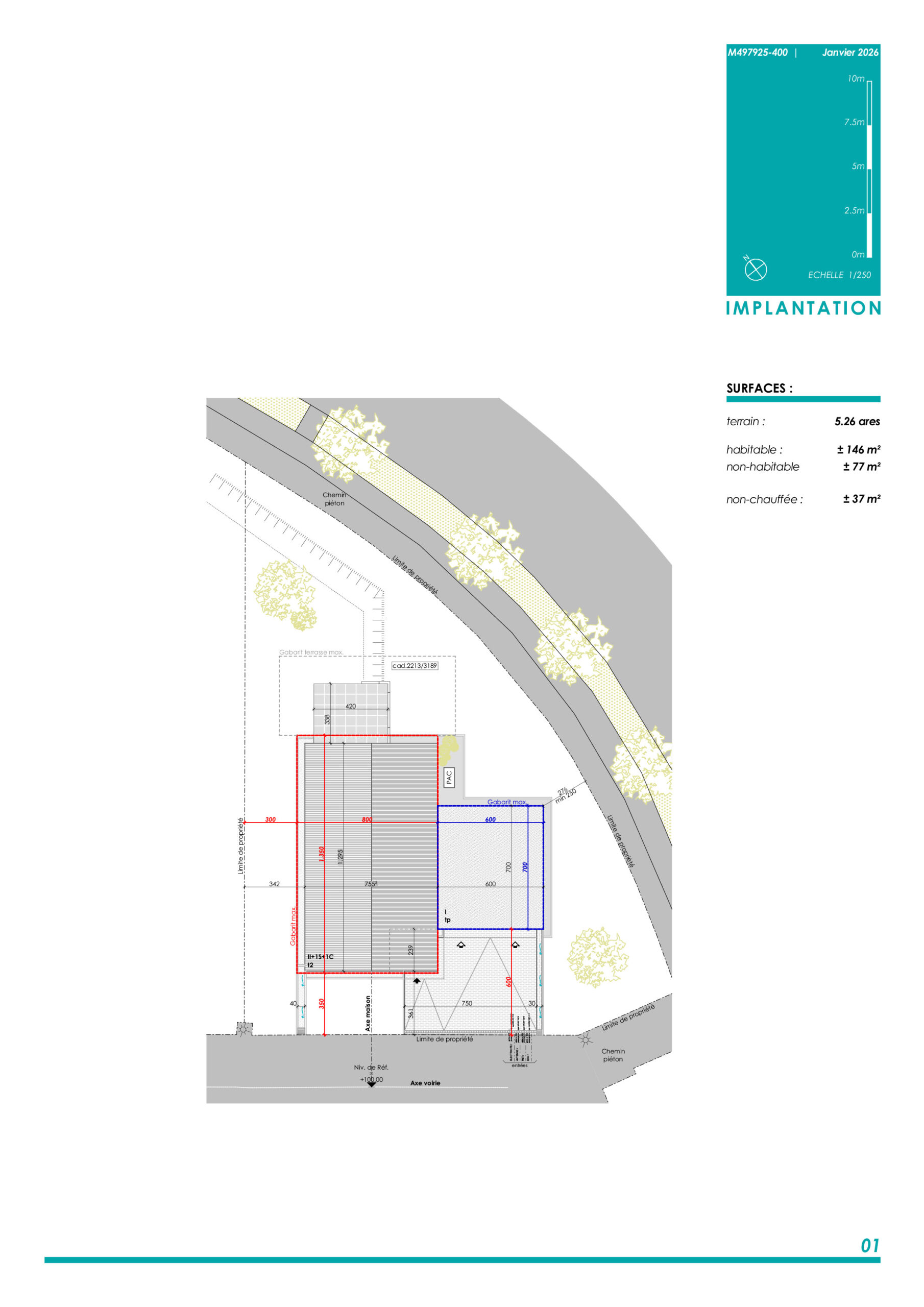 • ± 37 m2 surface non habitable, à l’extérieur de l’enveloppe énergétique